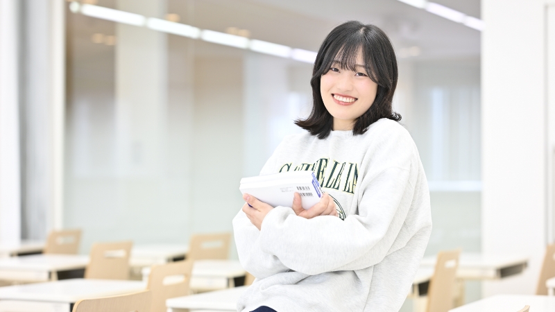 私は子どもの頃からテニスをやっており、実業団を経験してからのスタート。学校のホームページで「チャレンジしたい学生を募集します」という言葉を見たときに、ここだ!と感じました。入試区分に社会人枠があったのも、受験しようと思ったきっかけ。校舎がきれいで、最新の設備も整っているので、社会人だった私でも勉強に打ち込めると思いました。